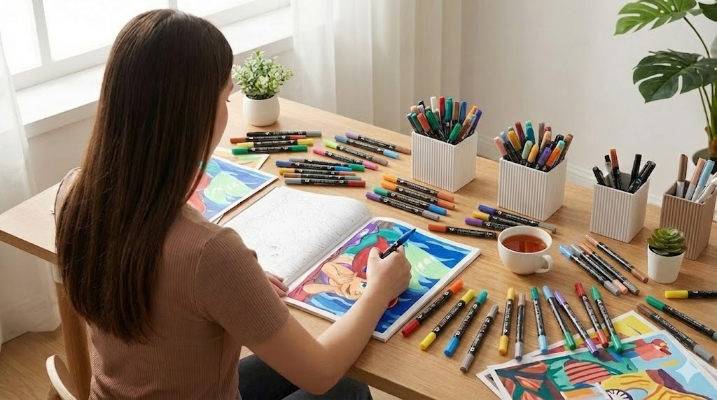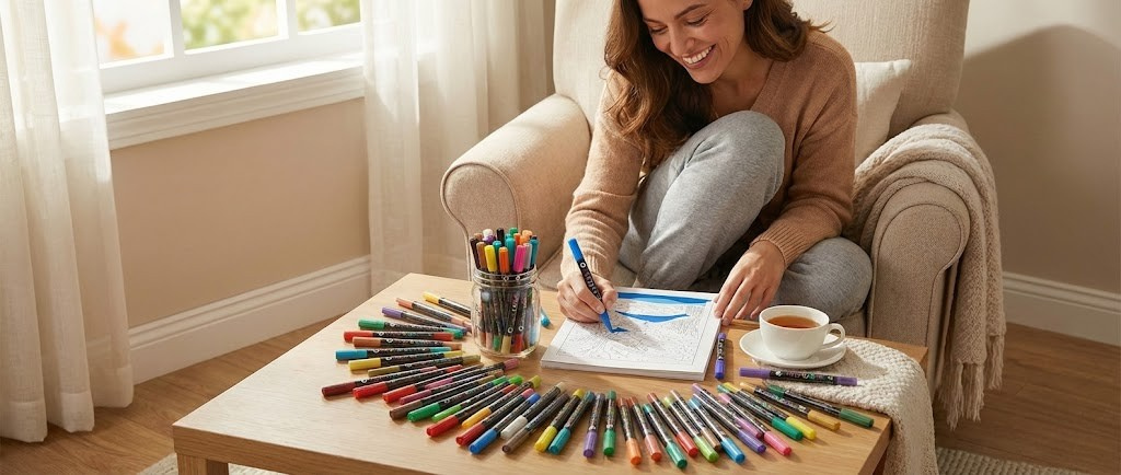 🖋️ Praktisch & Präzise: Robuste Spitzen und Tinten, die nicht durch das Papier dringen, um Ihre wertvollsten Malbücher zu schützen.